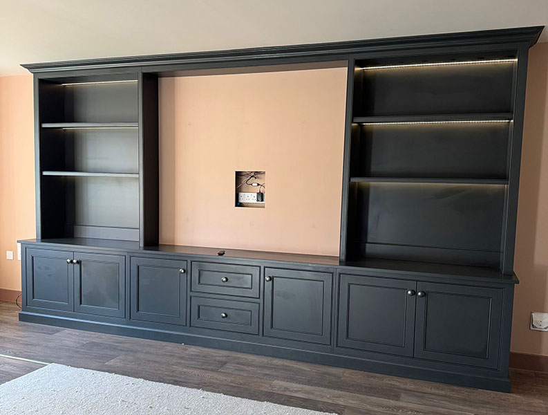 I design bespoke, custom made interior pieces that are created specifically for the room they belong in — not lifted from a catalogue or based on a standard template. From large media units and wardrobes to alcove cabinetry, sideboards, bookshelves and one-off furniture pieces, every design is tailored to the space, the architecture and how you live.