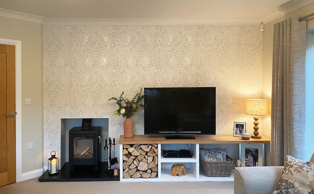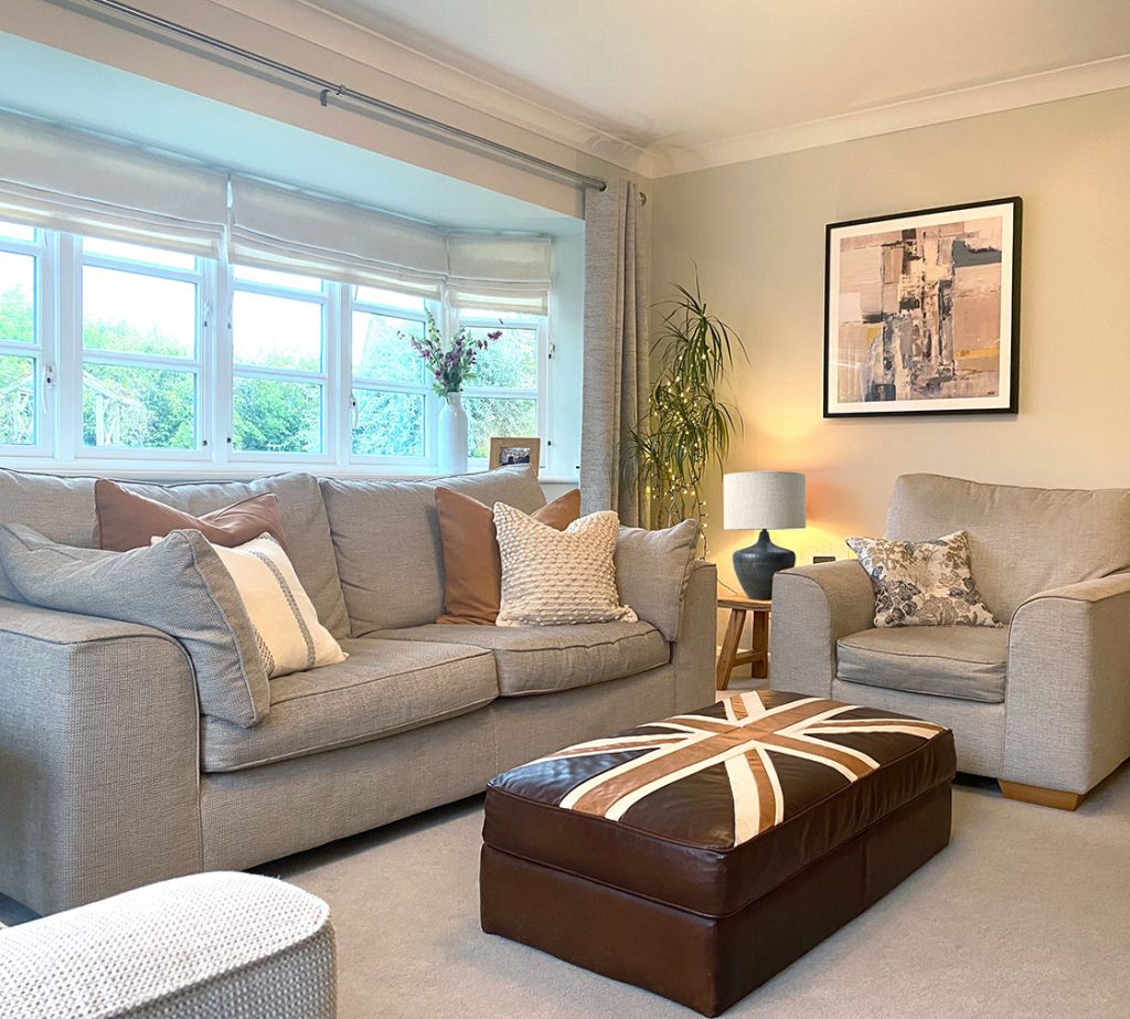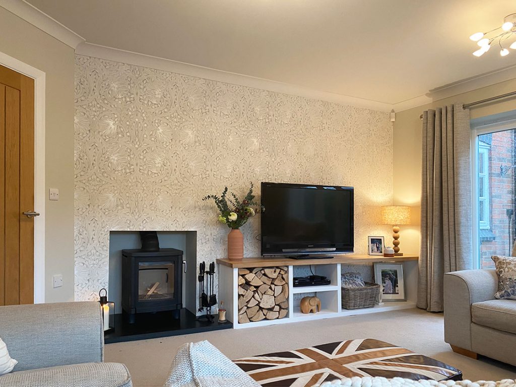 The layout of the room was not ideal. With a fire place being in an awkward space and a lot of scattered furniture, the room needed some love. The client wanted to keep the settee and the carpet.
